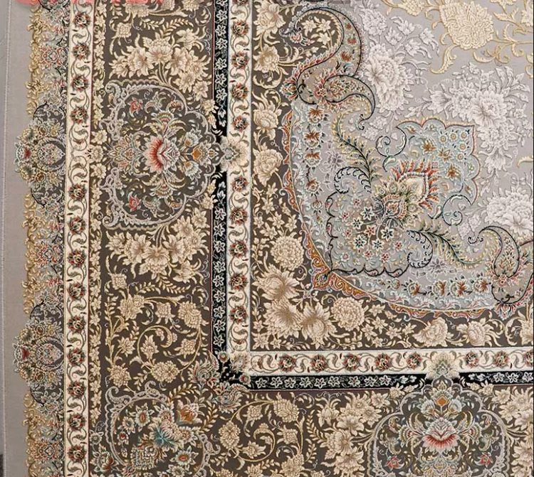 فرش ستاره کویر یزد کلکسیون ستارگان کویر ۱۵۰۰ شانه کد E507-1037 رنگ طوسی نقره ای